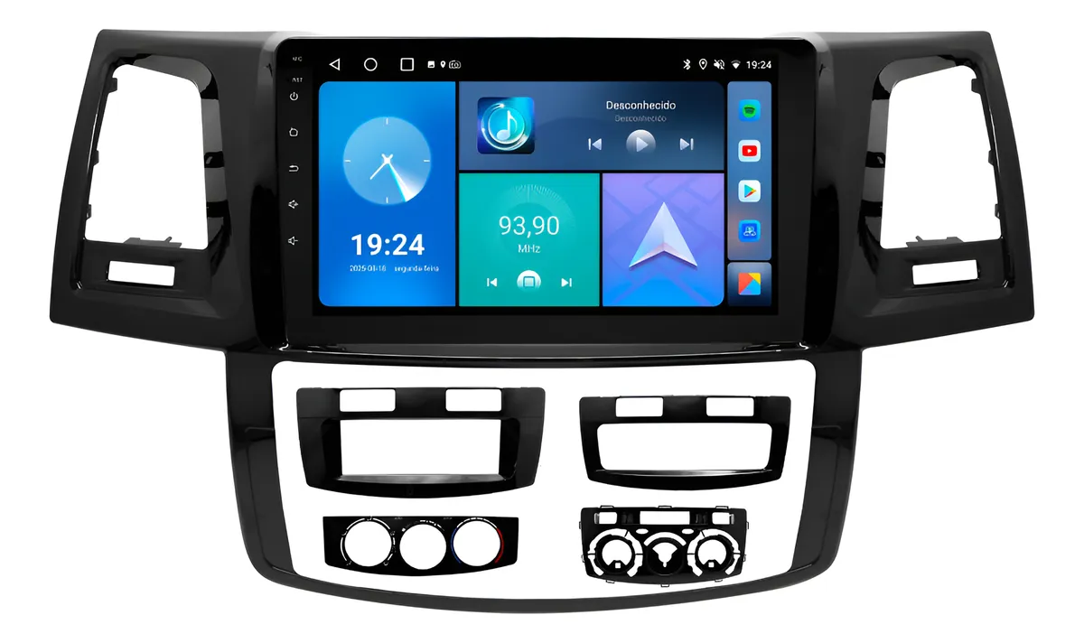 Central Multimedia Toyota Hilux 9” Android 14 – 4GB RAM / 64GB + CarPlay / Android Auto / WiFi 6 – Black Piano