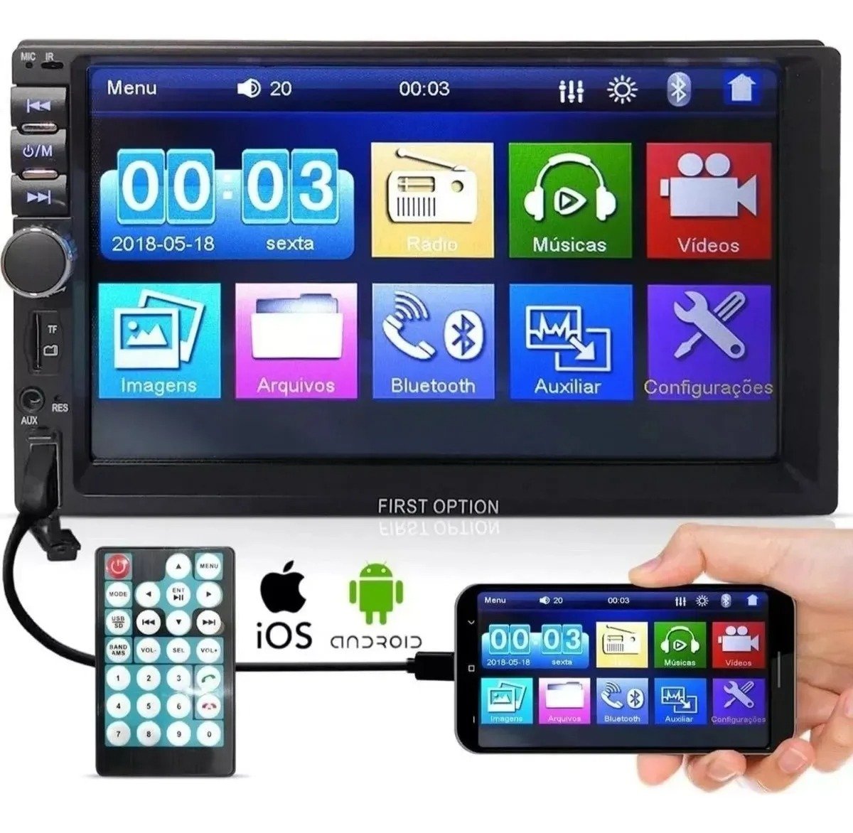 📺 Con una pantalla táctil de 7 pulgadas, este equipo te ofrece reproducción de audio, video e imagen, conexión Bluetooth para llamadas y música, entradas USB, SD y auxiliar, además de espelhamento de pantalla (Mirror Link) para Android e iOS a través de cable USB. También incluye cámara de retroceso, mejorando la seguridad al estacionar.