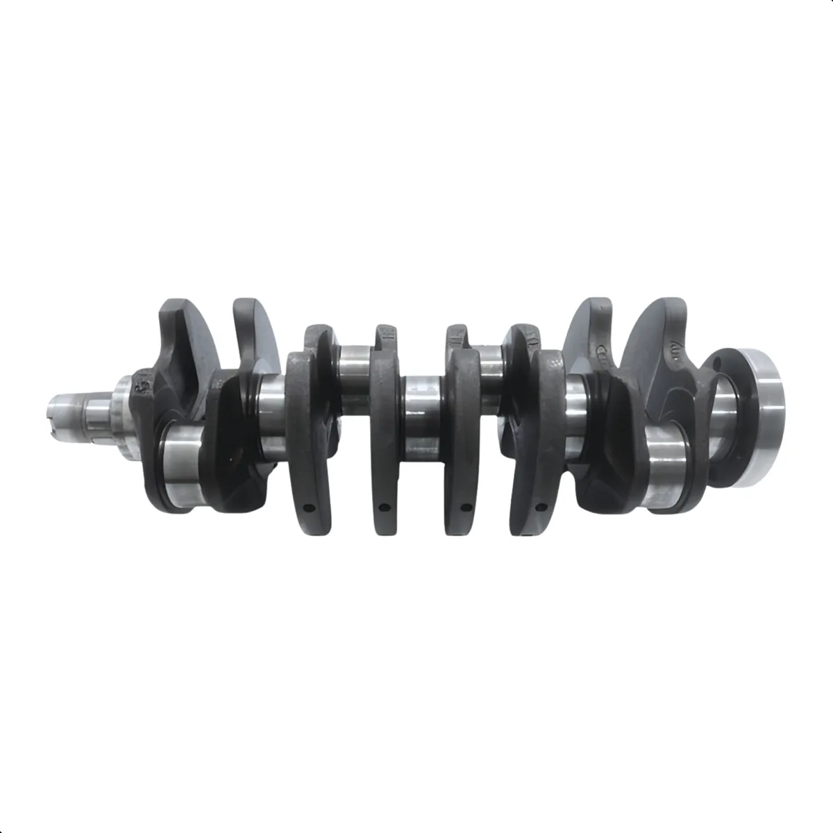 El eje principal presenta muñequillas o lóbulos excéntricos donde se fijan las bielas; estas superficies están rectificadas y bruñidas para tolerancias precisas de rodamiento, con diámetros ajustados para cojinetes de bancada y de biela. Incluye orificios de aceite calibrados para la lubricación de cojinetes y, en muchos casos, equilibrado dinámico para reducir vibraciones. Los extremos del cigüeñal contienen la rueda de fricción/dentada para la correa/chain de distribución y la polea del cigüeñal para accesorios, así como contrapesos integrados para optimizar el balance rotacional.