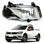 Faro auxiliar de milha ubicado en el lado izquierdo del paragolpes delantero del Volkswagen Saveiro G7, compatible con los modelos 2017 a 2023. Fabricado con carcasa de plástico rígido de alta resistencia a impactos, vibraciones y condiciones climáticas. La lente es de acrílico o policarbonato transparente, diseñada para soportar altas temperaturas y ofrecer buena transmisión de luz.
