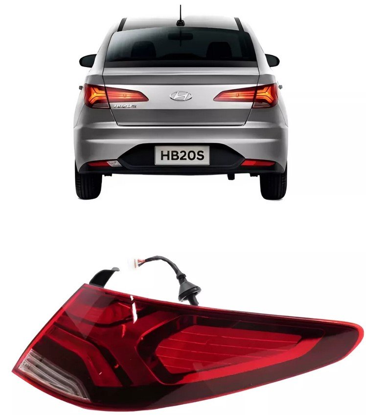 – **Diseño:** Moderno y estilizado, se integra perfectamente con la estética del HB20S, con lentes claros y detalles en rojo para las luces de freno.