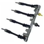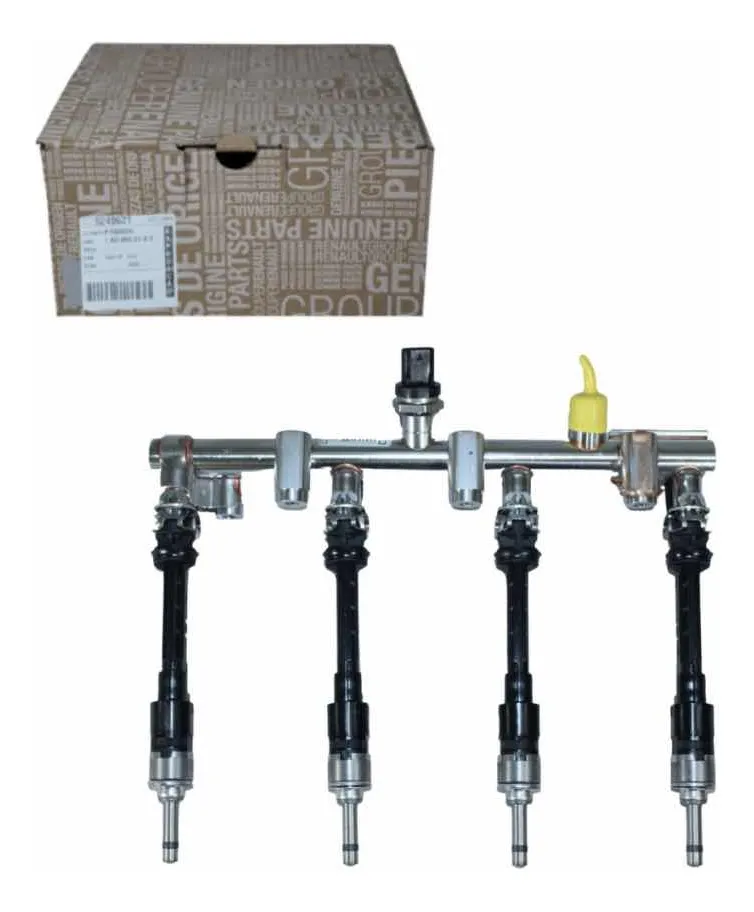 La flauta de inyectores (también llamada raíl de combustible o rampa de inyectores) es una pieza del sistema de inyección que agrupa los inyectores en un conducto común. Para los modelos Renault Captur, Duster y Oroch con motor 1.3 TCe Turbo, la flauta está diseñada para soportar la alta presión de combustible que requiere este motor, fabricada en materiales resistentes como aluminio o aleaciones tratadas, con sellos (O-rings) en los puertos donde se fijan los inyectores. Tiene orificios específicos para los inyectores, el regulador o sensor de presión de combustible, y la conexión con la bomba de alta presión. En varios casos, viene con los inyectores ya montados o asociados al mismo conjunto.