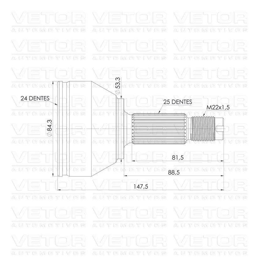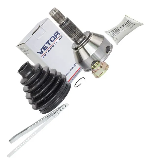 Junta homocinética delantera de alta calidad, diseñada para vehículos con transmisión manual. Fabricada por Vetor, marca reconocida por su durabilidad y precisión de encaje. Producto nuevo, con ajuste perfecto y rendimiento garantizado tanto en el lado derecho como izquierdo.
