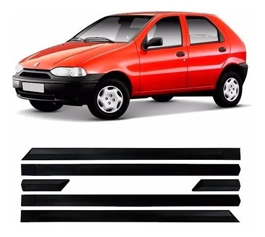 Juego de frisos laterales para Fiat Palio G1 (1996 a 2000), color negro, 4 puertas.