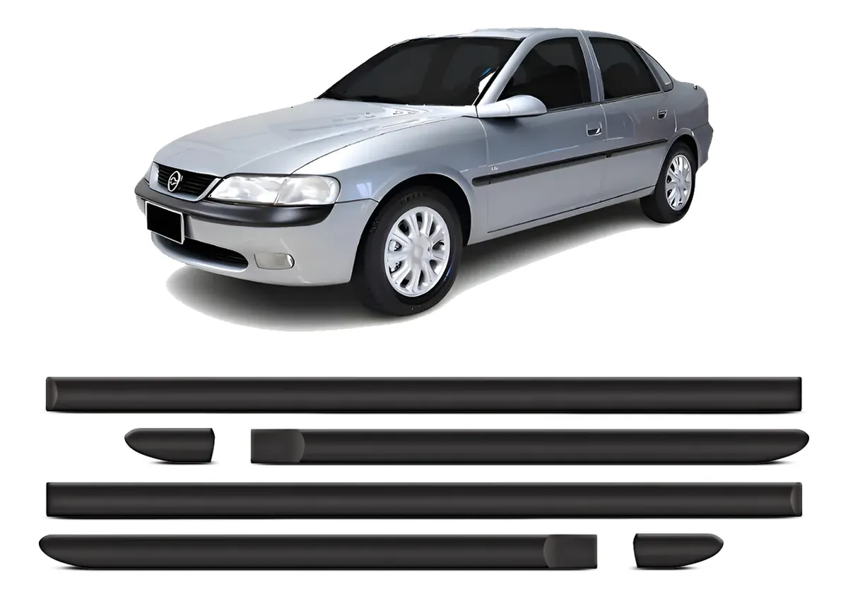 Descripción del producto: Juego de molduras laterales para Chevrolet Vectra modelos 1996, 1997, 1998 y 1999, en color negro. Son piezas de acabado exterior instaladas en los laterales de la carrocería, diseñadas para acompañar las líneas originales del vehículo y brindar una terminación visual más uniforme. Generalmente están fabricadas en plástico flexible o polímero de alta resistencia, preparados para soportar exposición solar, humedad, pequeñas fricciones y variaciones de temperatura sin perder su forma con facilidad. Su diseño sigue las medidas y curvaturas del Vectra de esos años para permitir una correcta adaptación sobre puertas y laterales.