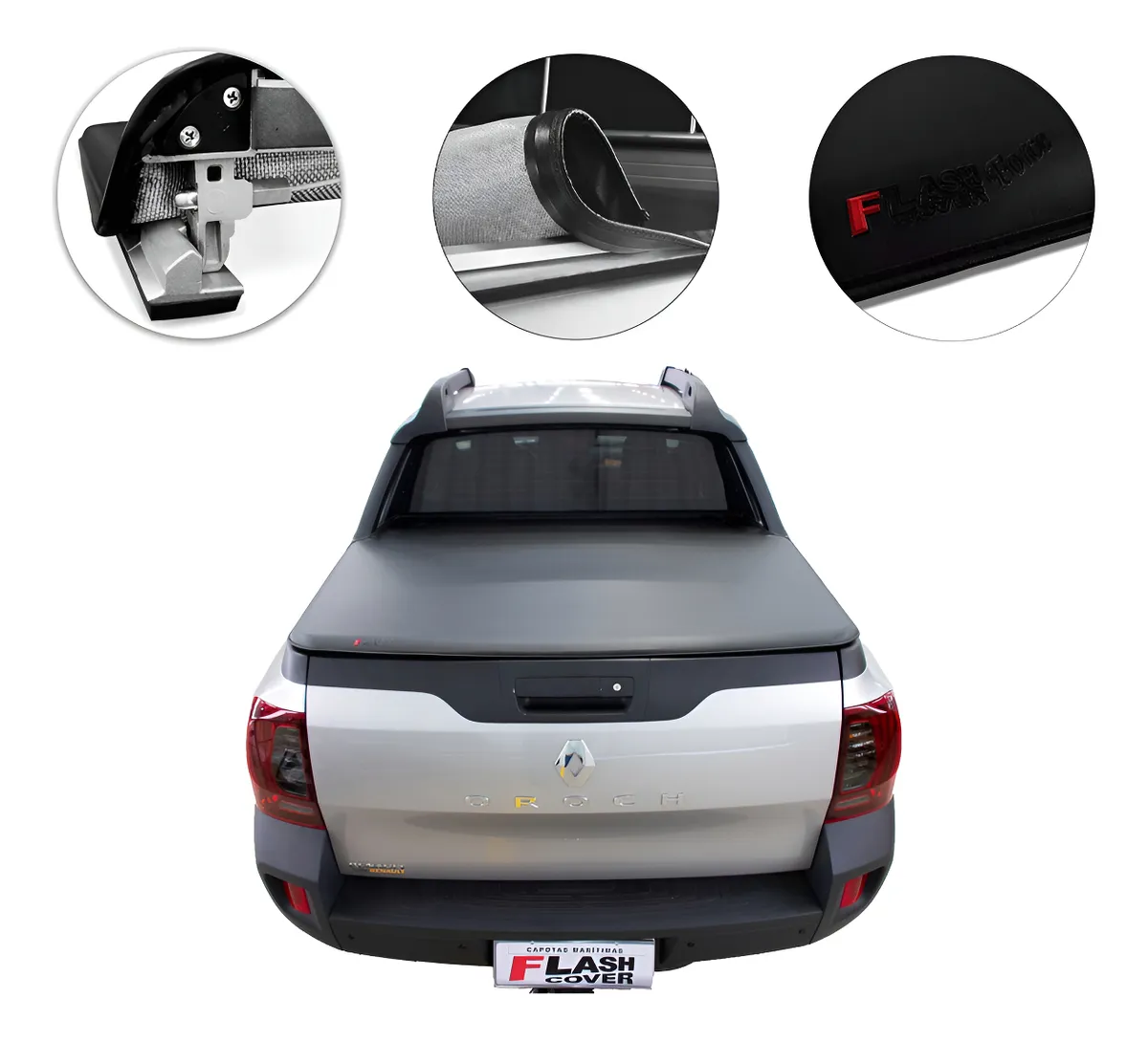 Capota marítima de alta resistencia, diseñada especialmente para Renault Duster Oroch . Sistema práctico de apertura trasera tipo Trek, excelente terminación y óptima vedación contra agua y polvo.