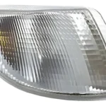 Se trata de un conjunto de lente y alojamiento diseñado para la señal de giro delantera del lado derecho (lado del pasajero) del vehículo Volkswagen Logus. El conjunto incluye lente transparente (o “cristal” según acabado) moldeada en policarbonato de alta resistencia a impactos y rayos UV, reflector interior metálico para optimización del haz de luz, portalámpara con base plástica termoestable y conector eléctrico estándar (2 o 3 pines según versión). El alojamiento está fabricado en termoplástico negro con refuerzos estructurales, fijaciones mediante tornillos o clips integrados y junta de sellado para evitar la entrada de agua o polvo. Está preparado para montar en el soporte original del faro, sin necesidad de modificaciones.