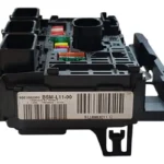 El módulo central BSM L11-00 es una unidad de distribución eléctrica ubicada en el compartimento del motor de vehículos Peugeot y Citroën. Está construido en una carcasa plástica resistente al calor y aloja en su interior circuitos impresos, fusibles y relés integrados. Dispone de múltiples conectores multipin para la entrada de alimentación principal desde la batería y la salida hacia diversos sistemas eléctricos del vehículo. Su diseño permite canalizar y proteger la energía de forma organizada, integrando rutas internas de potencia y control. Es un módulo del tipo “plug-in”, montado sobre soportes específicos y conectado directamente al mazo principal del motor.