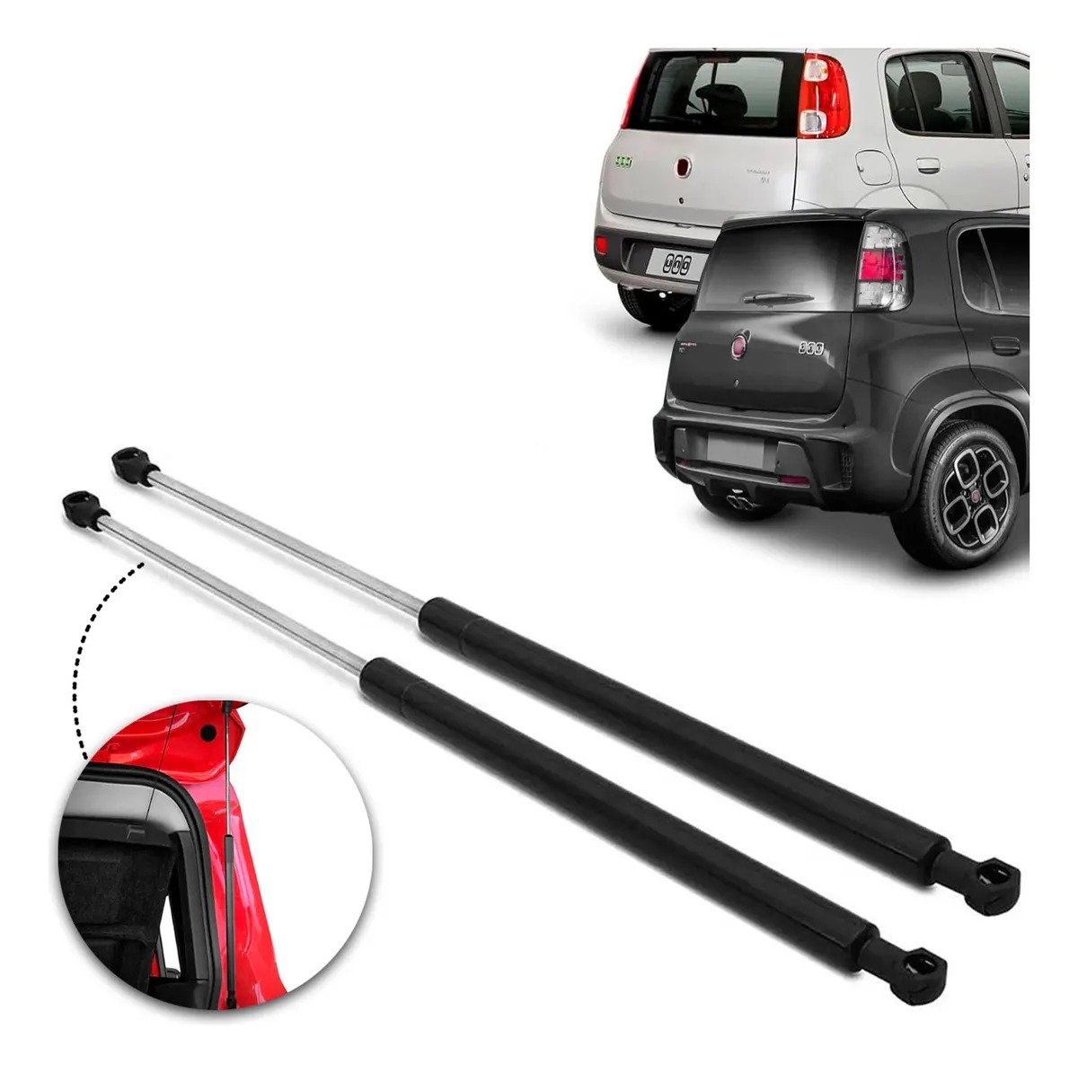 Diseñados específicamente para el Fiat Uno modelos 2010 a 2021 (Uno, Vivace y Way), estos amortiguadores de presión con resorte a gas garantizan un movimiento suave, firme y controlado del portón trasero. Evitan golpes inesperados, protegen la tapa y hacen mucho más cómodo cargar y descargar el baúl, incluso con una sola mano.