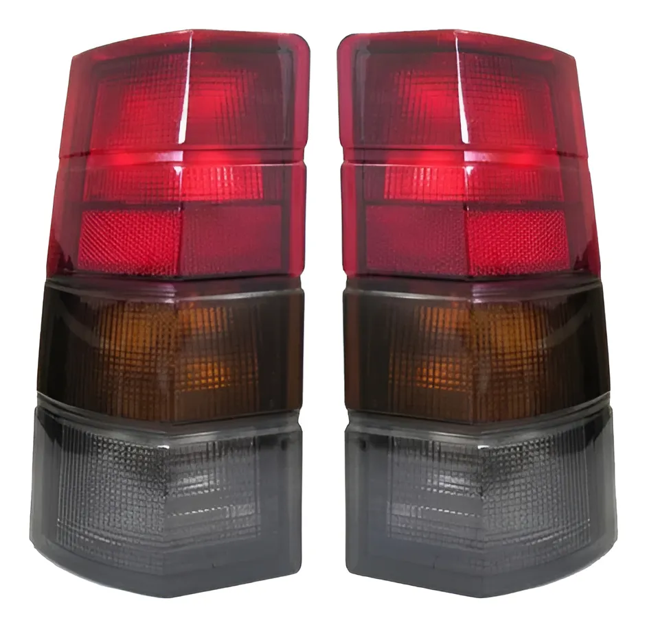 Par de faroles traseros para Chevrolet Ipanema modelos 1989 a 1998. Fabricados en material plástico resistente y con lentes de policarbonato, estos faroles incluyen las secciones para luz de freno, luz de posición, luz direccional e iluminación de la placa. Están diseñados para encajar perfectamente en la parte trasera del vehículo, manteniendo el diseño original de fábrica.