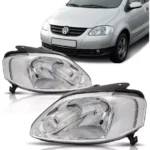 Los faros delanteros con diseño de foco único y acabado cromado para los modelos Volkswagen Fox, CrossFox y SpaceFox de los años 2003 a 2009 son compatibles, siempre y cuando se mantenga el diseño de la versión correspondiente a estos años. Este tipo de faro es común en versiones estándar y ofrece una apariencia elegante con acabado cromado.