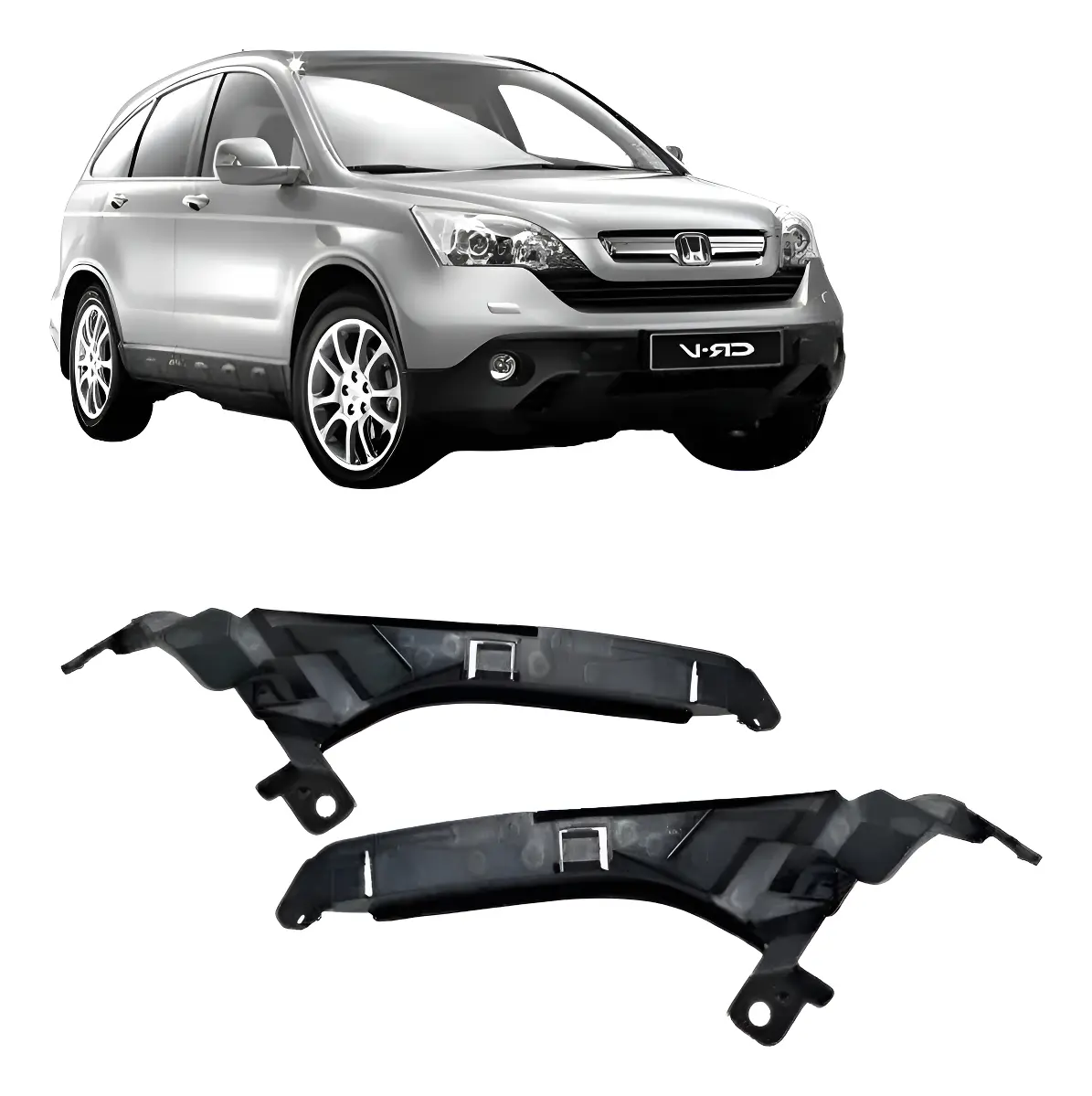 Conjunto de soportes guía para faros delanteros compatible con Honda CR-V 2007–2011, compuesto por piezas para lado izquierdo y derecho. Fabricados en plástico técnico de alta resistencia, generalmente polipropileno reforzado, diseñado para soportar vibraciones, cambios térmicos y condiciones ambientales del uso automotriz. Su geometría está desarrollada bajo especificaciones originales, permitiendo un acople preciso entre el faro y la estructura frontal del vehículo. Incluyen puntos de fijación para tornillos y encastres que aseguran una correcta alineación con la parrilla, guardabarros y soporte frontal.
