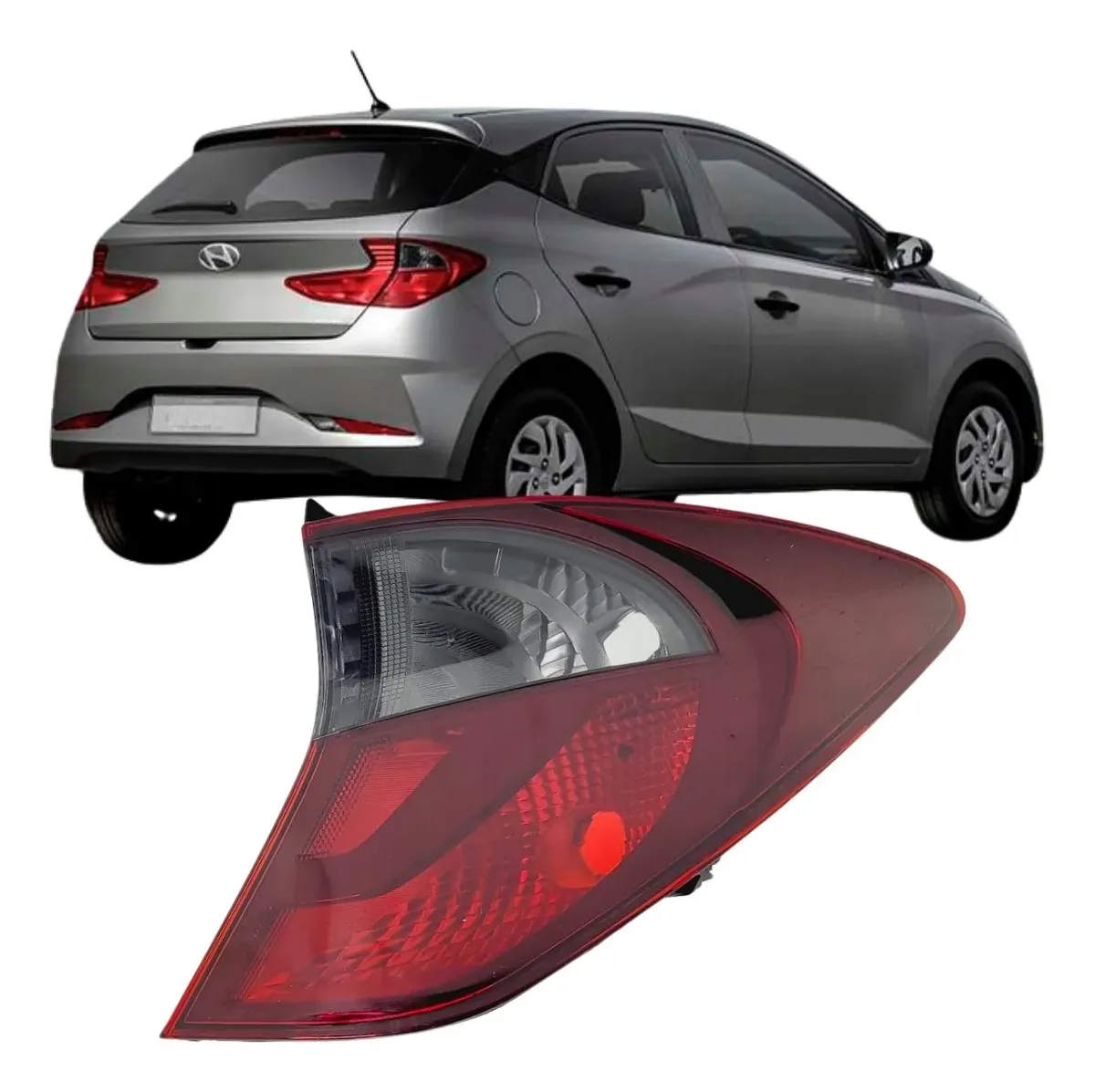 Piloto trasero bicolor fume de esquina para Hyundai HB20 Hatch, compatible con modelos 2020, 2021 y 2022, lado izquierdo o derecho según especificación solicitada.