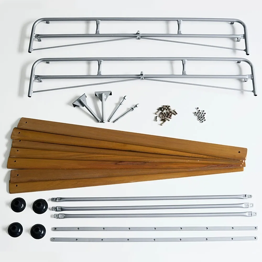 Fabricada en acero carbono con pintura epoxi de alta resistencia, ofrece durabilidad frente a clima, sol y uso continuo. La base en madera de cedrinho está tratada con barniz marino brillante, lo que protege contra humedad y le da ese acabado vintage inconfundible que combina perfecto con la silueta del Fusca.