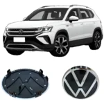 Emblema frontal para Volkswagen Taos 2022–2025, diseñado para la parrilla delantera central. Está fabricado en plástico automotriz de alta resistencia con acabado combinado negro y cromado, manteniendo el estilo original del modelo. Su estructura integra pestañas y puntos de fijación que permiten un montaje preciso sobre la superficie de la parrilla sin modificar anclajes. El acabado cromado está aplicado sobre capa base resistente a rayos UV para conservar brillo y color.